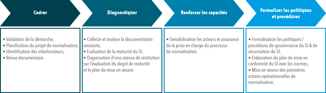 • Une méthodologie innovante s’appuyant sur les normes ISO 2700X et nos outils adaptés COBIT 5 / ITIL V3.