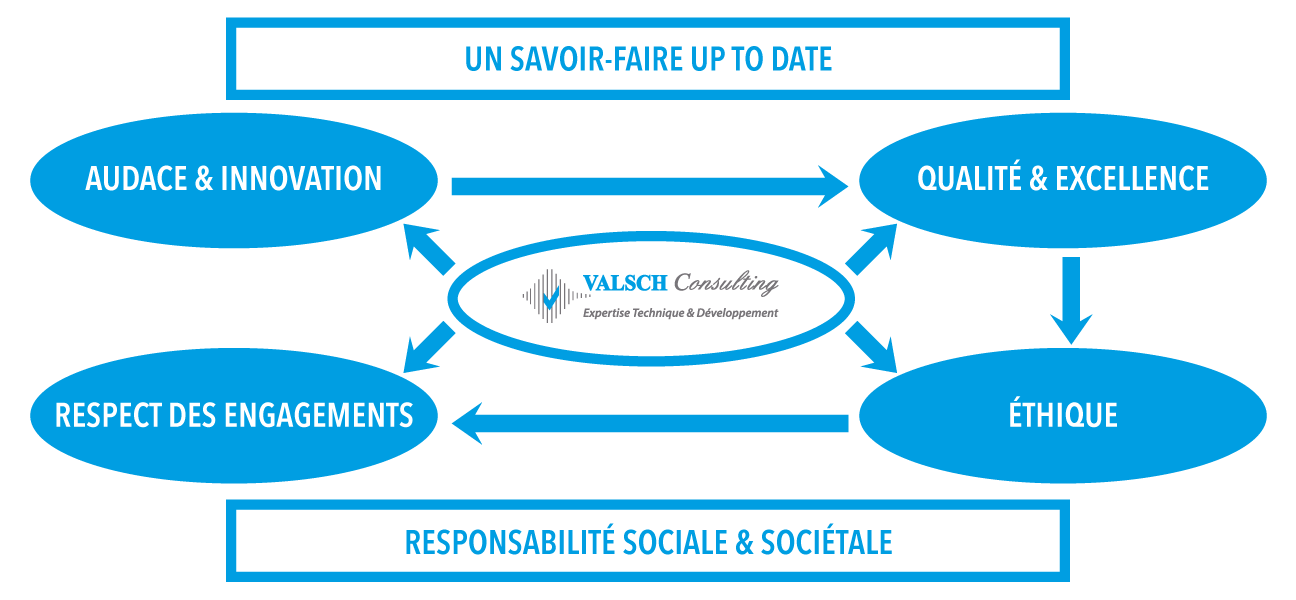 VALSCH Consulting s'engage au respect des valeurs humaines, à une contribution positive à la vie des communautés et à la préservation de la santé et de la sécurité au travail ainsi que de l'environnement.